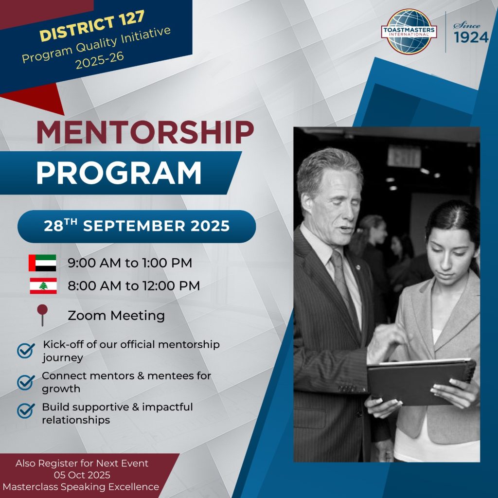 This is a 6-month program open to all District 127 members, designed to equip mentors and mentees for long-term success. A 3-member guidance committee will provide monthly training & support, with top performers recognized at the end of the program. π