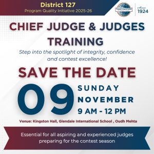 The District 127 PQ Team is organizing a wonderful in-person Training Session for Chief Judge and Judges – a perfect chance to learn tips, boost confidence & be contest-ready! βοΈπ